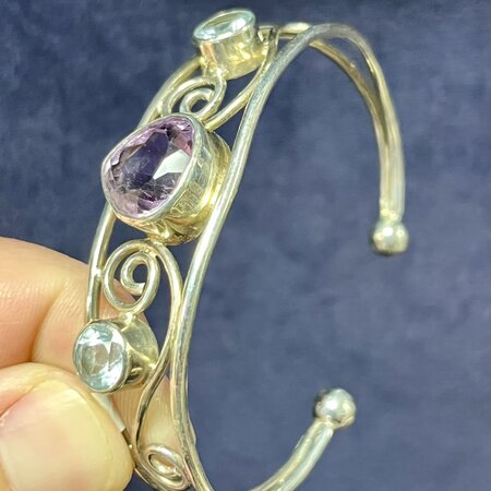 BRACELET STER AMETHYST / BLUE TOPAZ ADJ BANGLE