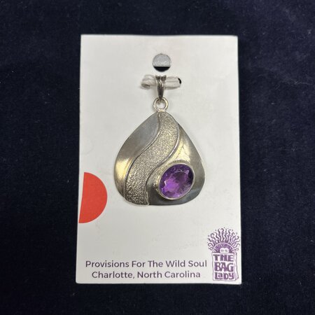 PENDANT SILVER W/AMETHYST STONE TRIANGLE SHAPE